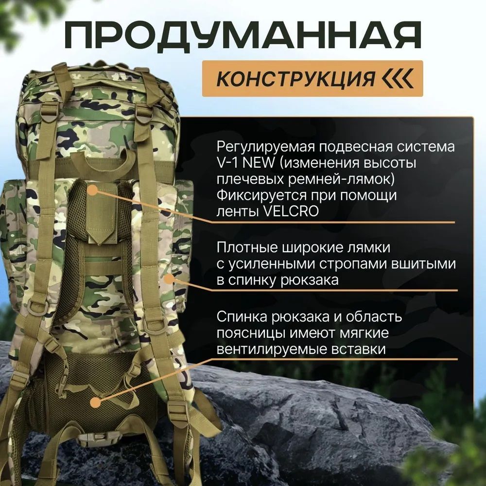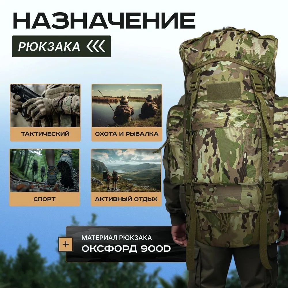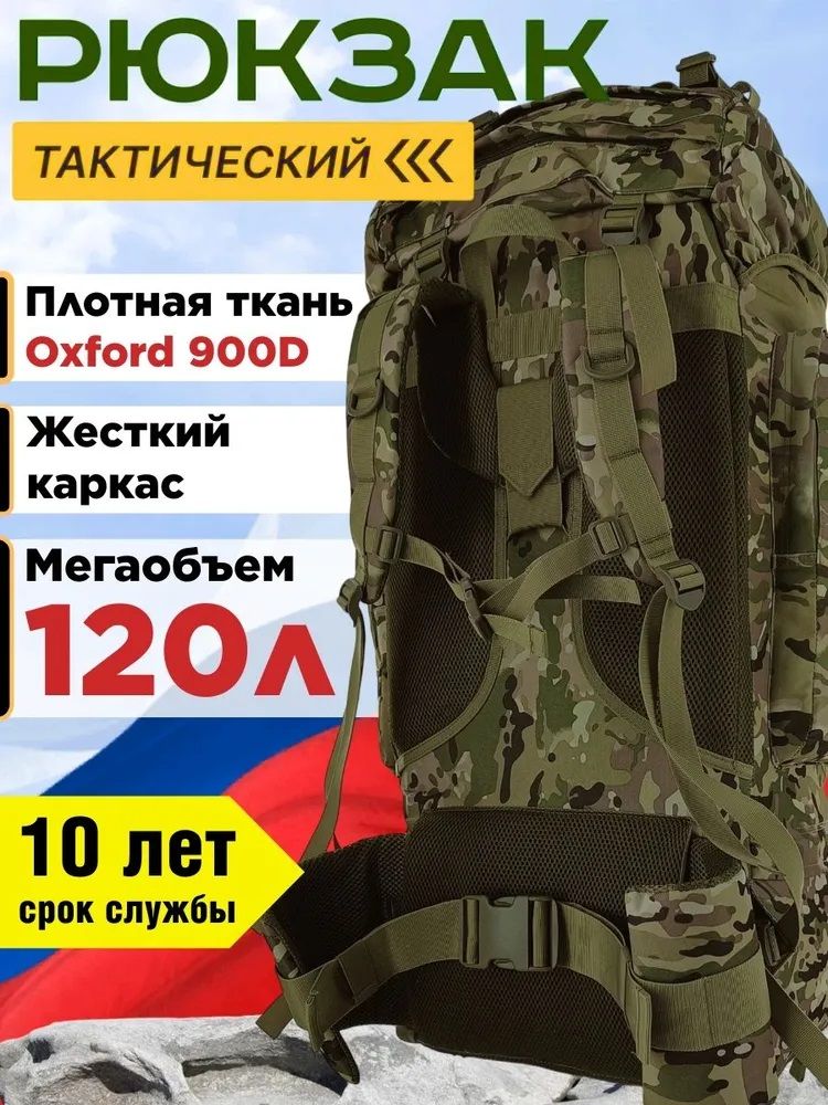 Рюкзак тактический 120л, для охоты и рыбалки, военный, армейский, рейдовый, штурмовой